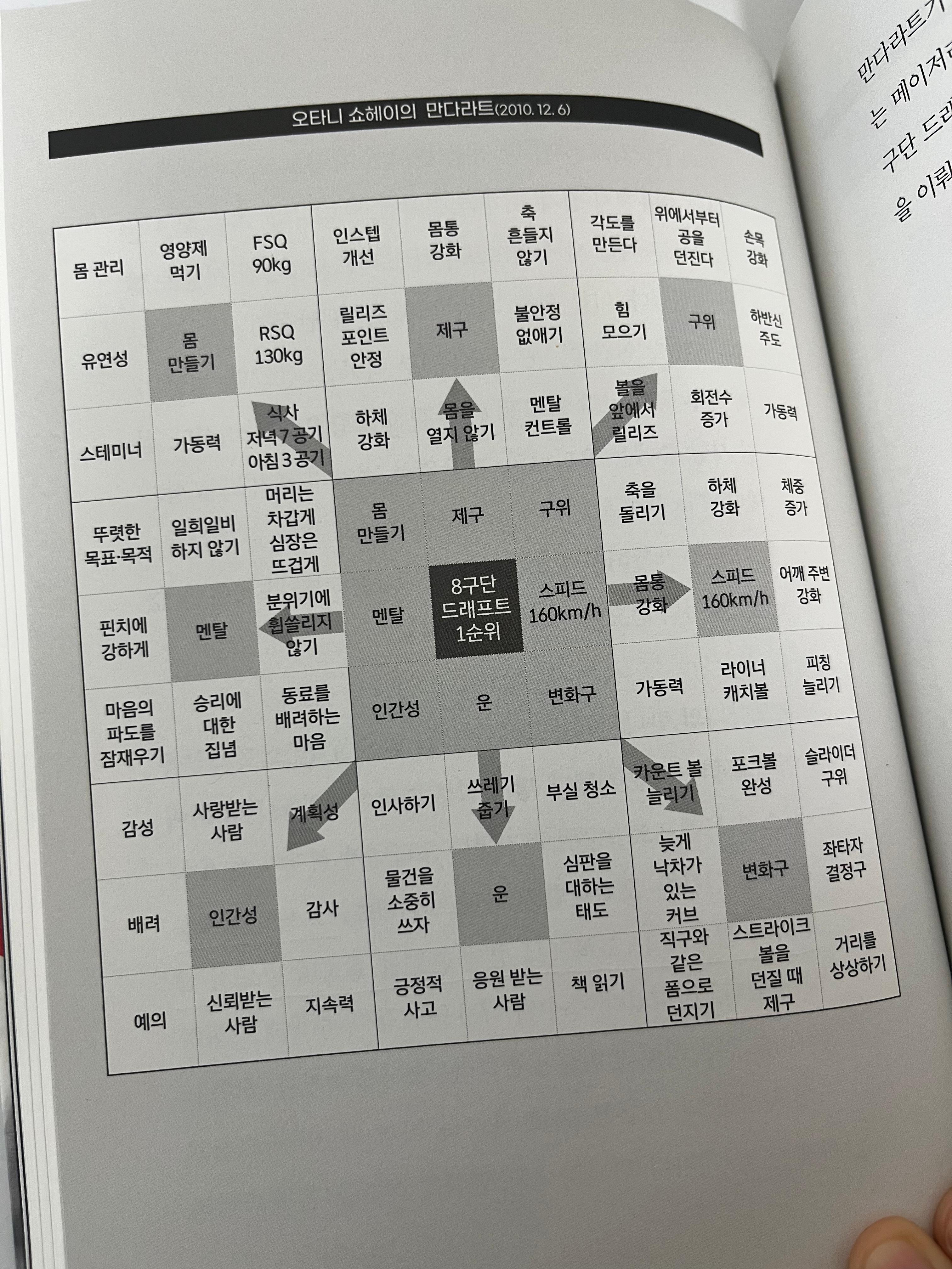 이것이 유명한 오타니 쇼헤이의 만다라트이다. 자기 관리를 얼마나 열심히 했는지 알 수 있다.